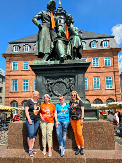 In Hanau wurde auch in diesem Jahr wieder das Brüder-Grimm-Denkmal am Rathaus mit einem oran-